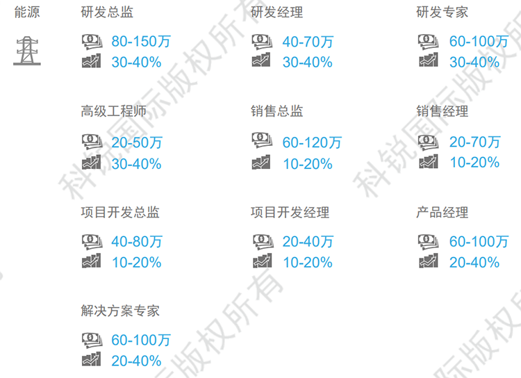 薪酬趋势:行业整体薪酬趋稳,自然涨幅在8-12%,跳槽涨幅在20-30%。能源互联网领域资深人才紧缺,部分职位薪资涨幅可达50%,甚至更高(文中部分数据是猎头公司凯发K8国际国际专家顾问的分析预测,供企业和猎头招聘参考)