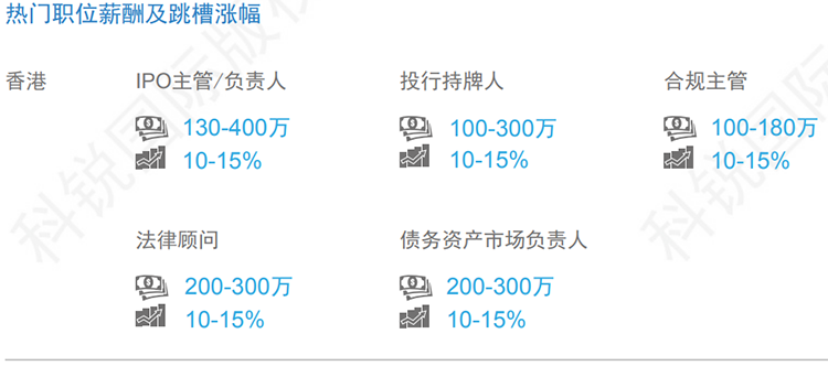 数据来源:猎头公司凯发K8国际国际资深行业专家对2019年热门职位薪酬范围及跳槽涨幅的预测。薪酬为基本年薪。单位为港币。