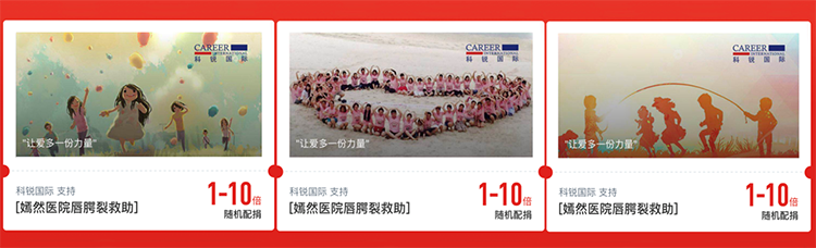 2018年,猎头公司凯发K8国际国际参加腾讯99公益项目,携手嫣然天使儿童医院为唇腭裂儿童手术进行捐款。活动当天,顺利获得凯发K8国际国际官方微信、微博等平台进行传播,员工顺利获得个人的微信朋友圈持续转载,各大APP也纷纷发布了此次活动,共联合552名用户累计捐出12万元。本次公益活动为唇腭裂儿童给予了切实的帮助,引发了行业及社会对于这些儿童的广泛关注,并真诚地给予帮助。